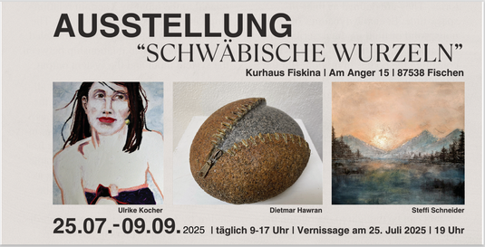 So lautet der Titel einer aktuellen Ausstellung im Kurhaus "Fiskina" in Fischen im Allgäu. Dort stelle ich mit Ulrike Kocher (Zeichnungen, Portraits) und Steffi Schneider (abstrakte Landschaftsmalerei) meine Objekte, Plastiken und Skulpturen aus. Mehr Infos findet ihr unter folgendem Link: